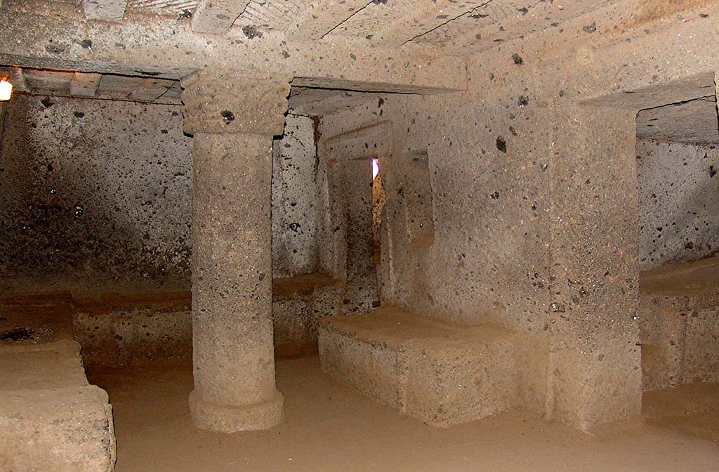 All’inizio le tombe erano a pianta circolare con un tetto cupola molto simili alle abitazioni comuni, all’interno veniva posto l’arredamento caro al defunto con tutti i mobili e gli utensili che potevano servire per la vita nell’aldilà. Le pareti erano dipinte con scene di vita e momenti piacevoli che il defunto aveva trascorso nella vita terrena.