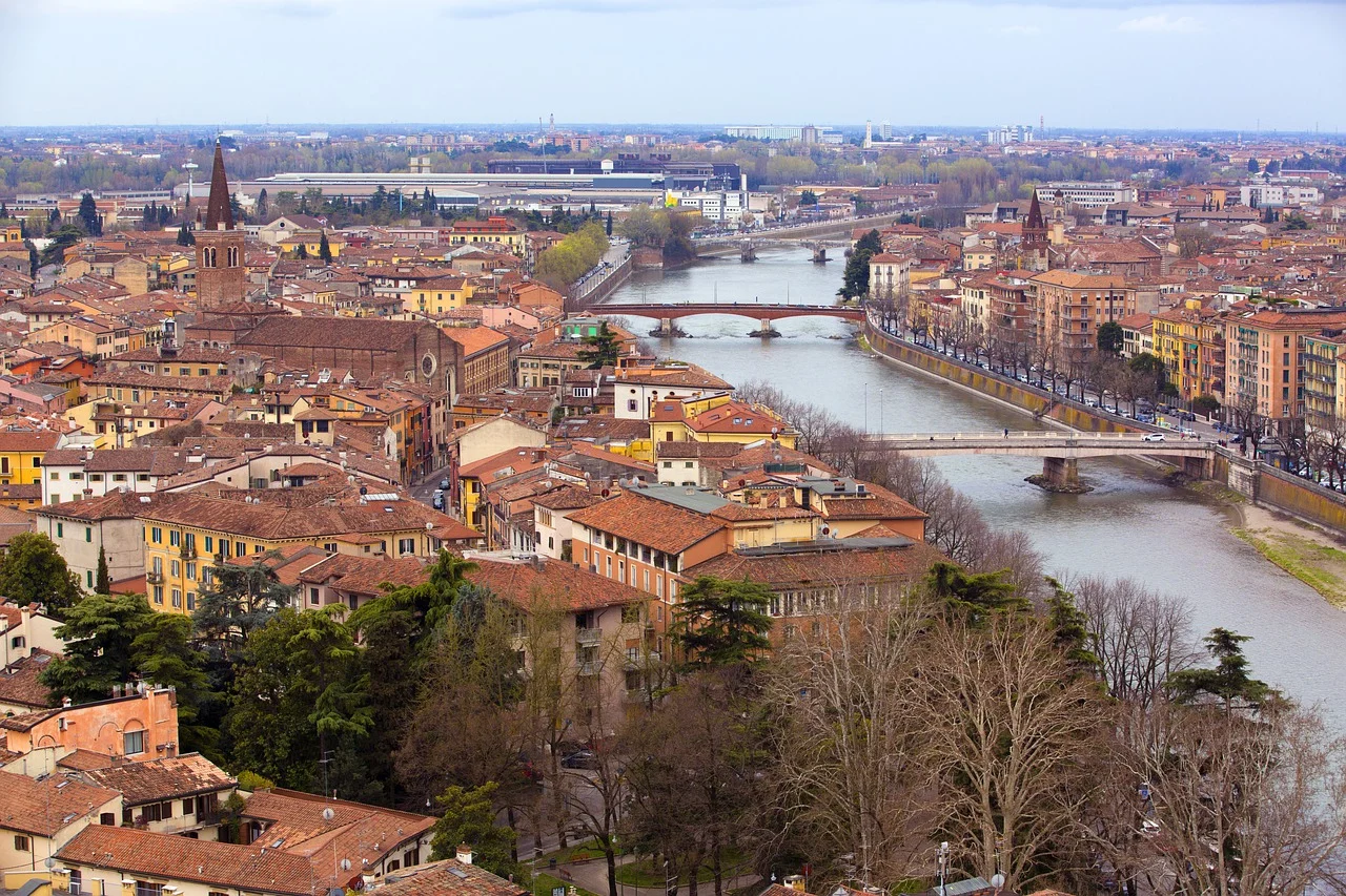 - A Verona, l’Adige crea una delle anse più pittoresche d’Italia, circondando la città con il suo corso tortuoso.