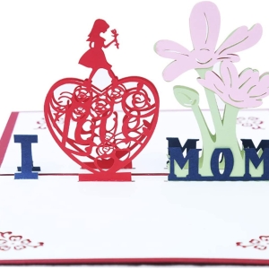 Biglietto d'auguri Festa Della Mamma – 3D Pop-up Biglietti Auguri Fatto a Mano Card Tagliata del Festival con di Fiori e Cuore Busta inclusa Migliore Carta Regalo Speciale per Moglie,Compleanno,Regali