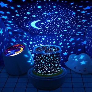 Proiettore Bambini, Lampada Proiettore Stelle,5W Doppia Alimentazione Rotazione a 360 Gradi Illuminazione a 6 Colori Luminosità regolabile, Adatto per neonati, Feste, Compleanni e Natale