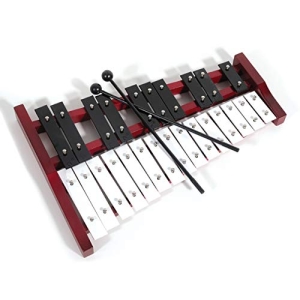 • Xilofono Glockenspiel Soprano professionale in legno rosso, con 25 tasti in metallo, per adulti e bambini, include 2 bacchette in plastica