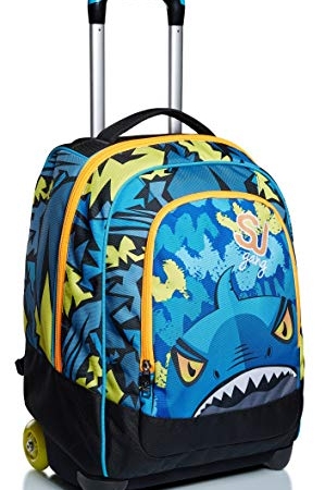 SJ GANG Big Trolley, Trolley Scuola, Blu Multicolore, 2in 1 con Spallacci Uso Zaino, Bambini, Maxi Capienza