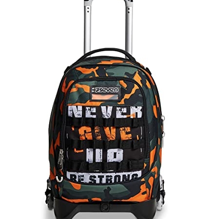 Trolley Scuola Seven Jack 3 Ruote – Camoupix Boy Bambino – Zaino Sganciabile – Doppio Uso – Arancione, Verde Militare