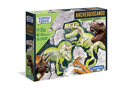 Con questo kit scientifico potrai ricreare la feroce lotta tra preda e predatore! scava nei blocchi di terreno e recupera i fossili di due temibili dinosauri: il t-rex e il triceratopo.