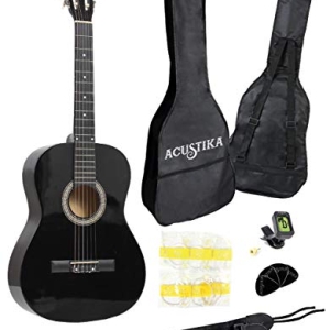 Chitarra Classica Acustika in Legno 100 cm 6 Corde in Nylon 4/4 Misura 39 Nero