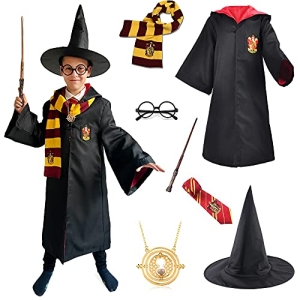 Costume magico Harry per bambini, con bacchetta magica, mantello, occhiali, cravatta, mantello, sciarpa, medaglia, Halloween, carnevale, 125 cm