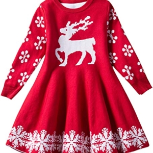 EUDOLAH Natale Abito Dolce Carino a Maglia Bambina con Stampa Alce e Fiocco di Neve Maglione Caldo Inverno(Rosso,L(120cm)