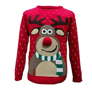 Generic Kids – Maglione natalizio lavorato a maglia, motivo: Rudolph Pon pon rosso. 11-12 Anni