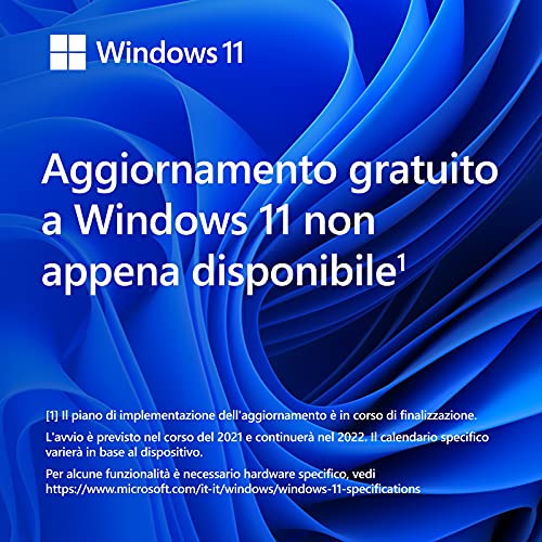 - AGGIORNAMENTO GRATUITO A WINDOWS 11 NON APPENA DISPONIBILE: il piano di implementazione dell’aggiornamento è in corso di finalizzazione; l’avvio è previsto nel corso del 2021 e continuerà nel 2022; il calendario specifico varia in base al dispositivo