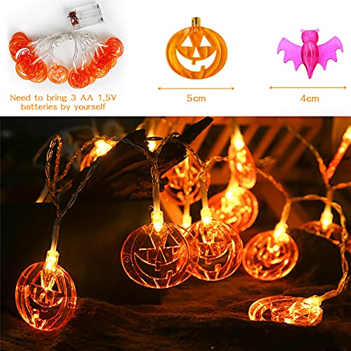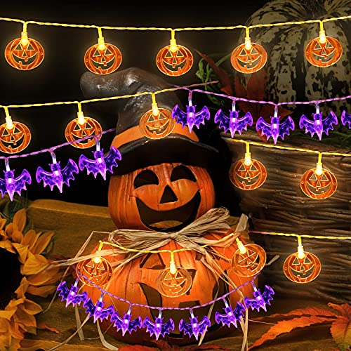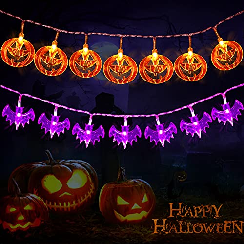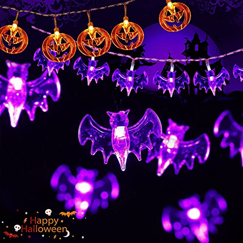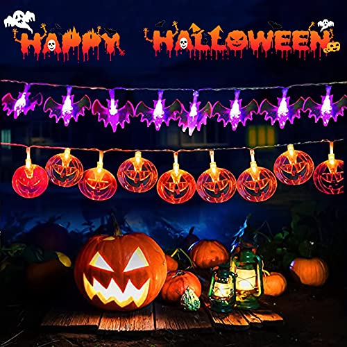 - 🎃【Set di decorazioni per halloween】2 luci decorative per Halloween,zucca arancione,pipistrello viola,facile da costruire una misteriosa atmosfera spaventosa.