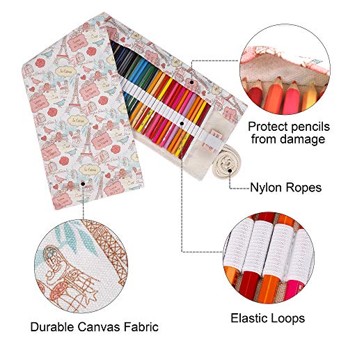 MengH-SHOP Astuccio in Tela 72 Fori Colorate Tela Sacchetto della Matita Pratico Tela Matita Wrap Astuccio per Artista, Studenti, Scuola, Ufficio (Stile Torre di Ferro)