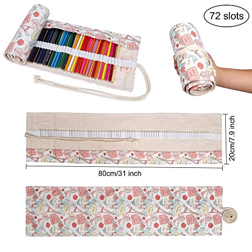 • 72 slot multi usi: rotolo di matita colorata in tela con 72 slot adatti per normali matite colorate, penne gel e persino pennelli artistici, può essere utilizzato non solo come involucro di matite, ma anche una custodia per pittore o persino una borsa per cosmetici Astuccio.