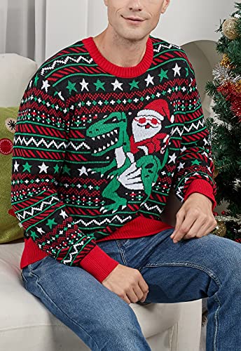 - Disegno elegante: simpatico maglione di dinosauro di Babbo Natale. Divertente abbigliamento natalizio per gli amanti dei dinosauri, tutti possono indossarlo in modo moderno o tradizionale, pensato per chi vuole distinguersi ed essere audace.