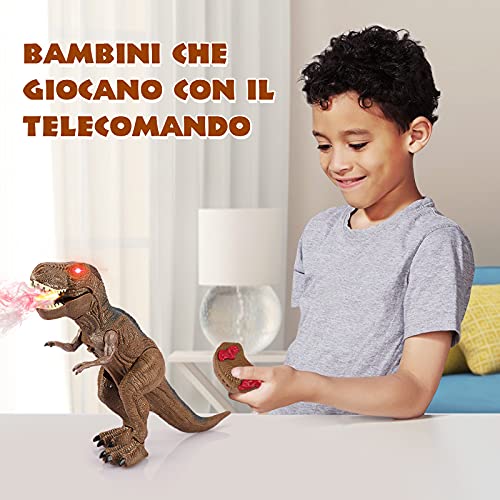 - 【Miglior regalo di dinosauro per bambini】 I dinosauri RC sono adatti a ragazzi e ragazze di età superiore a 3,4,5,6,7,8 anni. Questo giocattolo di dinosauro tirannosauro sarà uno dei migliori regali per Natale, Ringraziamento, Capodanno, compleanno, Pasqua, feste, premi e feste a tema dinosauro.