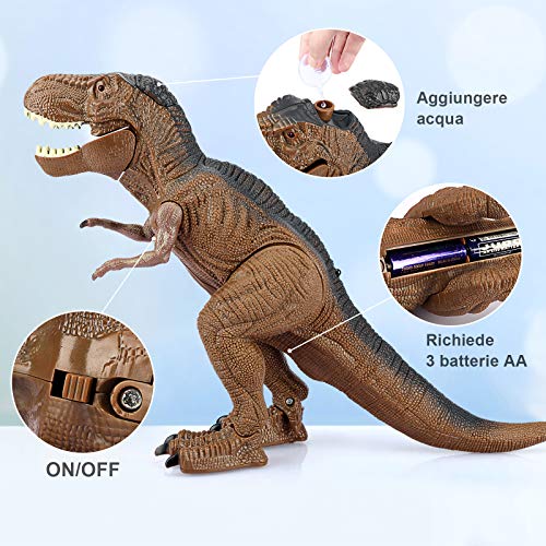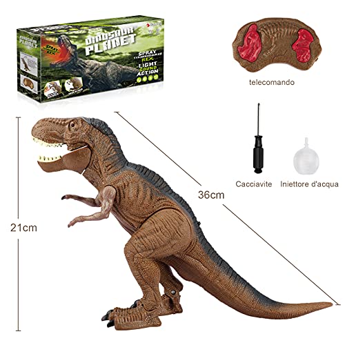 - 【Set giocattolo dinosauro multifunzionale】 Questo giocattolo dinosauro può camminare, brillare, muovere la bocca, spruzzare acqua nebulizzata e imitare il ruggito del dinosauro tramite telecomando. Il giocattolo di dinosauro RC soddisfa le aspettative dei bambini e aiuta a sviluppare l’intelligenza e le abilità pratiche dei bambini.