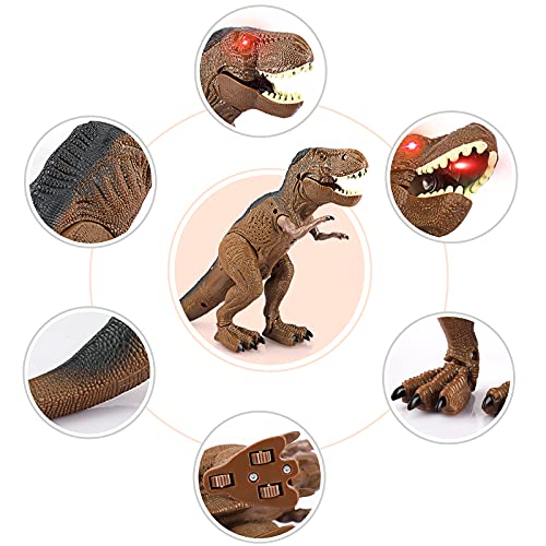 - 【Design realistico del dinosauro RC】 I dinosauri robot hanno occhi luminosi a LED rossi con pelle marrone. Disegni di forme realistiche e dettagli pratici portano i fan dei dinosauri nel mondo giurassico. Inizia subito la tua avventura con i dinosauri!