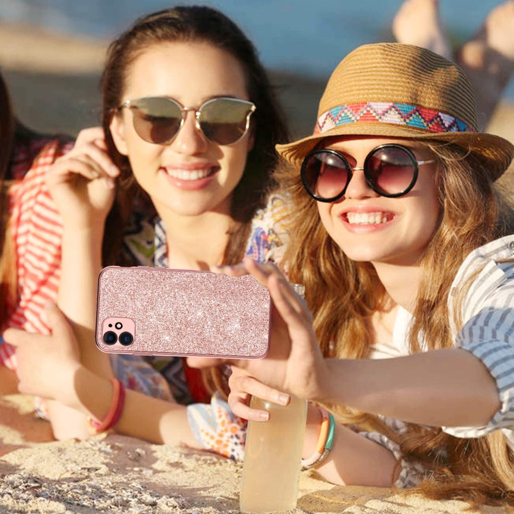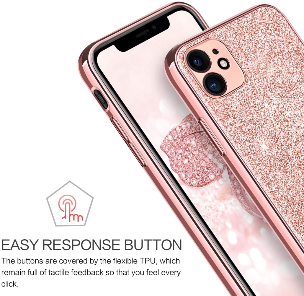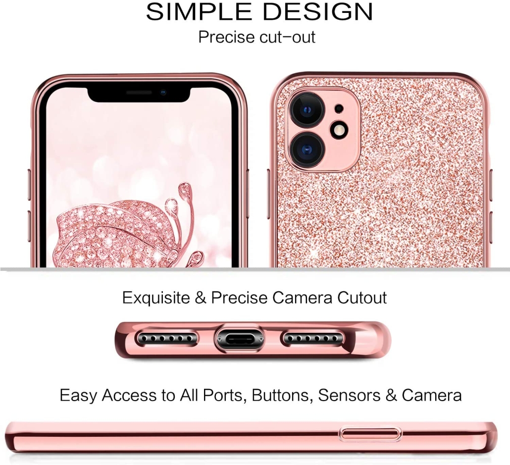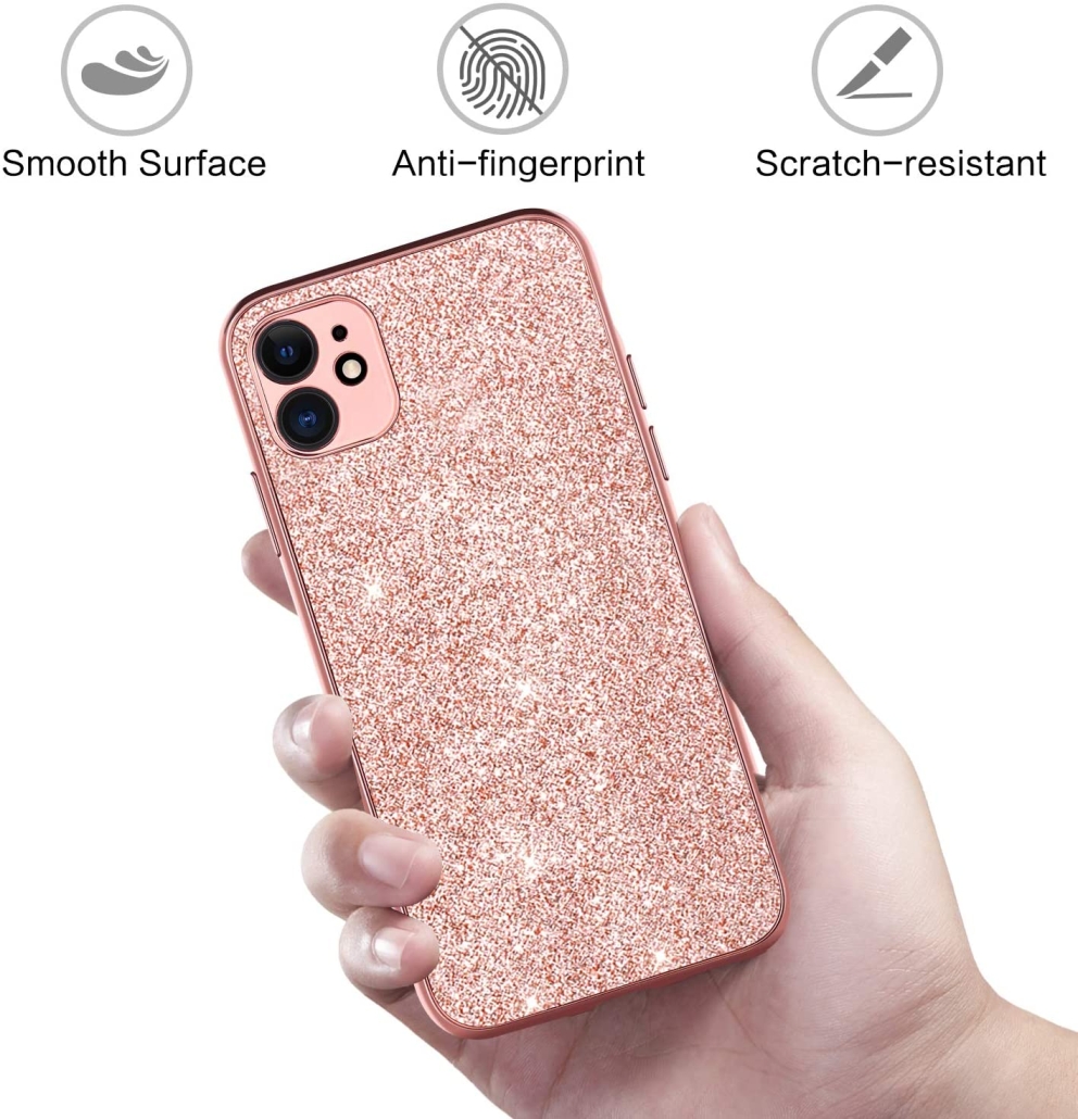 - custodia iPhone 11 Bling Disegno: la pasta di conchiglia di outter con pelle sintetica in oro rosa che appare elegante e glittery senza avere quella struttura grezzo scintillante, che sarà estremamente scintillante quando cattura la luce
