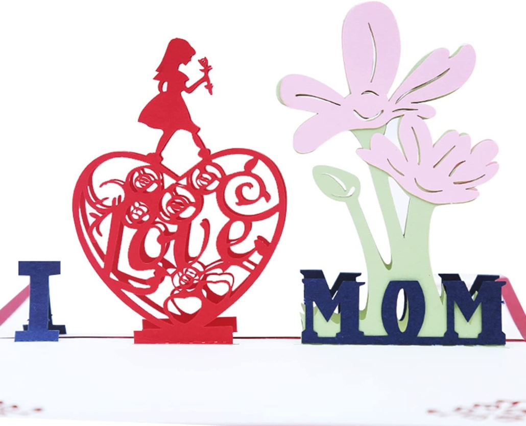 - ♥【Biglietto 3D Pop Up per Mamma】♥Non appena hai aperto con cura questo biglietto, un sorprendente fiore 3D con la sagoma del motivo “I Love Mom” appare sorprendentemente. Il biglietto della festa della mamma è pieno di sorprese e colori sorprendenti, morbidi i colori rosa e la cura dei dettagli il biglietto per un regalo speciale per mamma L’immagine di una ragazza che tiene dei fiori su una carta tagliata ad arte del cuore rosso esprime l’amore di sua figlia per la festa della mamma.