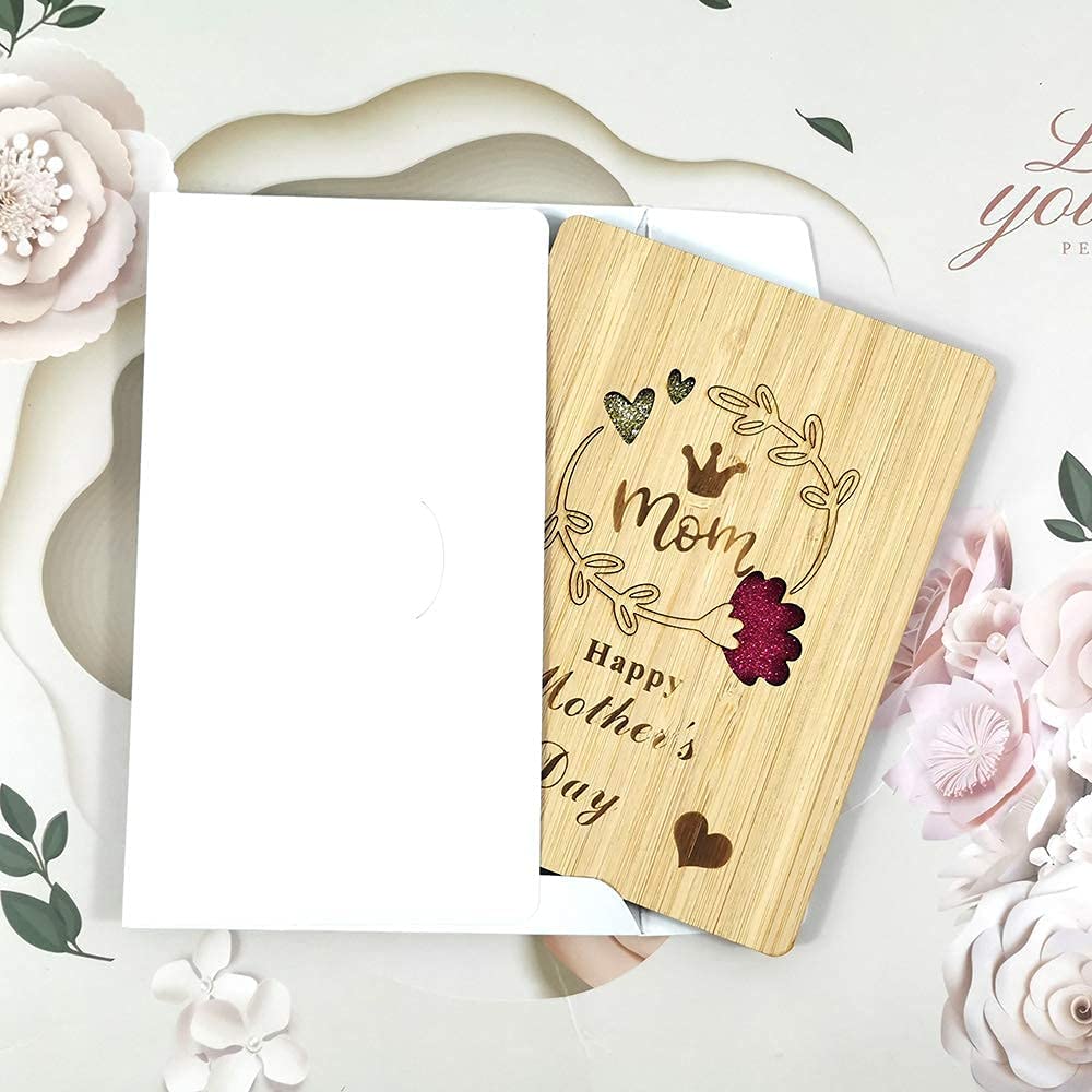 - 【Squisita fattura e sagomatura】 Il biglietto di auguri in legno è realizzato in bambù di alta qualità, lucido e colorato, che sembra molto delicato e unico, mentre è più resistente e durevole, quindi è una buona scelta per il biglietto di auguri per la festa della mamma.