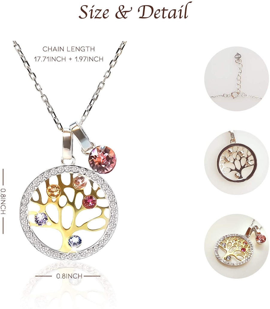 - ♥ DESIGN D’ISPIRAZIONE ♥ La collana dell’albero della vita è impreziosita da cristalli di colore, il bellissimo cristallo del marchio riflette la bellezza della collana. La collana si chiude con una classica chiusura a moschettone. Il pendente può essere separato dalla catena in modo da poter cambiare se si desidera la collana ed è regolabile con una catena.