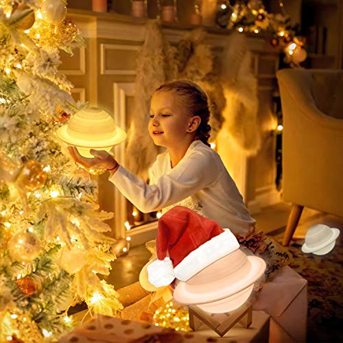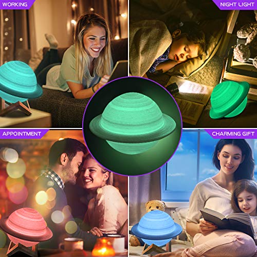 CoMokin Nuovo Lampada Saturno 3D Lampada da Notte Ricaricabile a 16 Colori, Lampada Saturno LED con Supporto in Legno e Rete Sospesa, Telecomando e Controllo Touch Regalo Perfetto per Bambini Amici