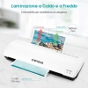 - Laminazione a Caldo e a Freddo: Dispone di 2 velocità di laminazione per diversi tipi di sacchetti di laminazione (spessore: 2 x 80-125 mic), più flessibili per l’uso quotidiano