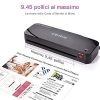 - Versatile per la Casa e l’Ufficio: La serie di facile utilizzo comprende strumenti utili- la plastificatrice, taglierina da carta, arrotondatore d’nagolo, e 20 sacchetti di laminazione(5 A4 e A5, 10 A6). Grazie alle operazioni ottimizzate ed estremamente semplificate, questa plastificatrice è ideale per la casa, l’ufficio, e i progetti scolastici.