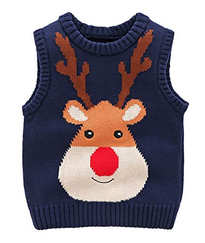 Happy Cherry Neonate di Natale Maglione Cotone di Maglia Gilet per Bambini Mantieni Caldo Autunno e Inverno 9-12 Mesi Blu