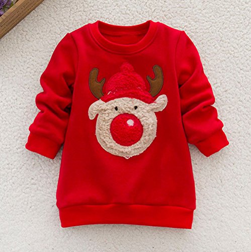 Mbby Felpe Neonato Natale Invernali 1-4 Anni Bimba Ragazze E Ragazzi Maglietta Renna Stampe Girocollo Manica Lunga Addensare Caldo Natalizio Pullover Maglione Felpa