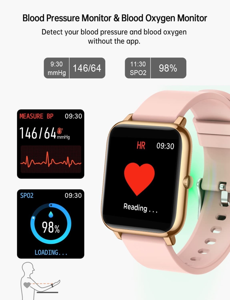 - Monitoraggio della salute 24 ore : Orologio intelligente Popglory con frequenza cardiaca, pressione sanguigna, monitoraggio dell’ossigeno nel sangue, prestare sempre attenzione alla salute fisica, ma i dati sono solo usati per riferimento. Questo orologio intelligente può anche misurare il sonno automaticamente, il che aiuta a conoscere i dati di veglia, luce e sonno profondo.