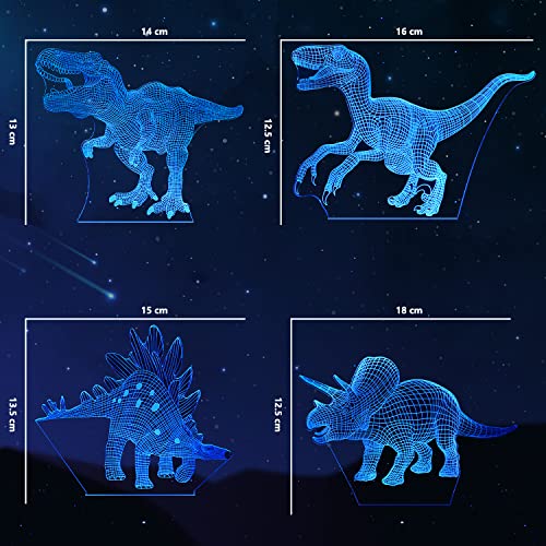 - 🌟 【Multicolore e telecomandato】: questa luce notturna 3D dinosauro può essere commutata tra 16 colori e 4 modalità flash. Sia il telecomando che il pulsante a sfioramento possono controllare la luce. È facile controllare le luci notturne 3D.
