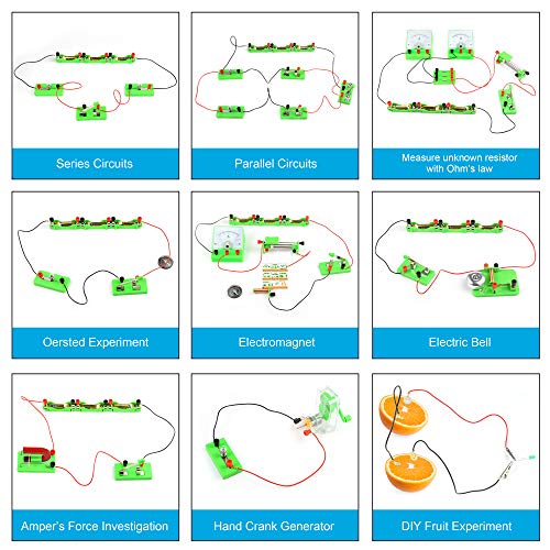 - Ampia applicazione: il kit STEM di apprendimento dell’elettricità del circuito di base può costruire molti progetti diversi, come circuiti di serie, circuiti paralleli, generatore di mani, regola di Solenid e Ampere, ecc. Può ben catturare l’attenzione dei bambini e lasciare che cerchino di costruire, sperimentare ed esplorare circuiti semplici elettrici di base, educare correttamente alcune conoscenze del circuito sarebbe un buon momento di interazione con i tuoi figli insieme