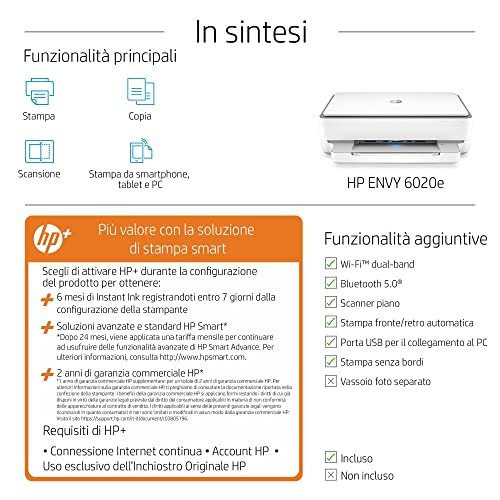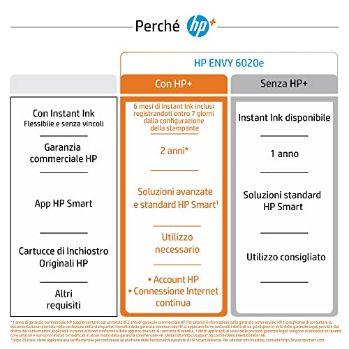 HP Envy 6020e, Stampante Multifunzione, 6 Mesi di Inchiostro Instant Ink Inclusi con HP+