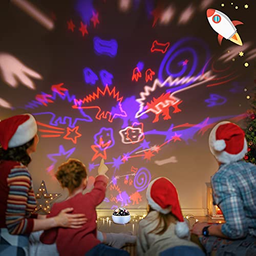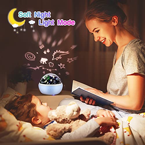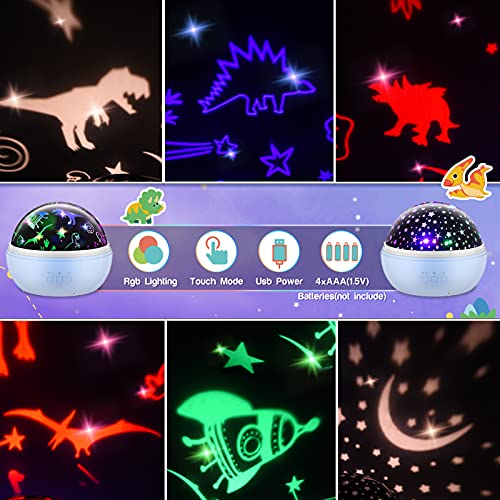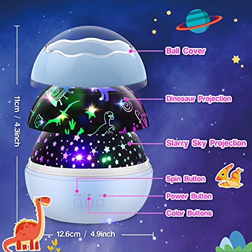 - [8 Metodo di illuminazione] Esistono quattro tipi di lampade di proiezione di rotazione: bianco, blu, rosso e verde. Una combinazione di colori diversi porta a diversi metodi di illuminazione. Con i bambini per esplorare il cielo stellato e il mondo dei dinosauri, creano un mondo da sogno per i bambini che porta un’infanzia felice.