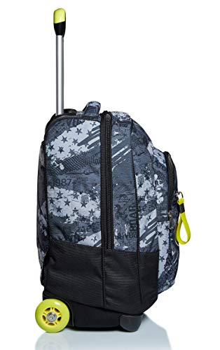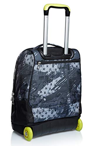 - Caratteristiche: fisso con doppia barra e crossover system, il sistema ‘’salvaspallacci”; ruote da 75 mm, spallacci a scomparsa totale nello schienale quando utilizzato come trolley, doppia barra con due regolazioni in altezza, fondo rigido preformato, rinforzato e integrato per garantire la stabilità del prodotto e la protezione del contenuto