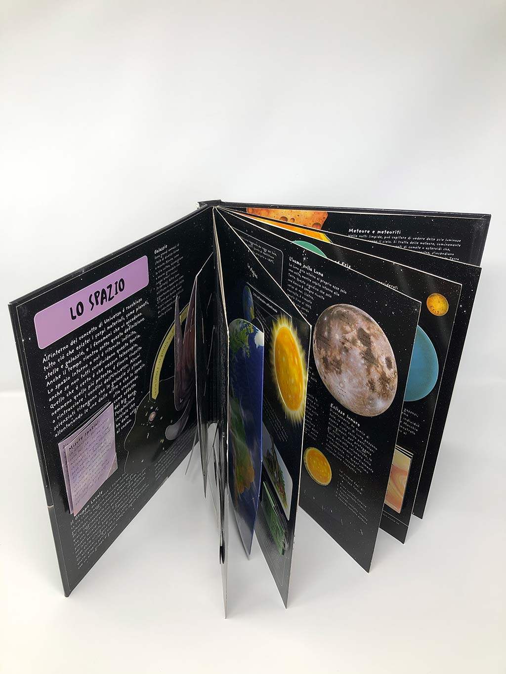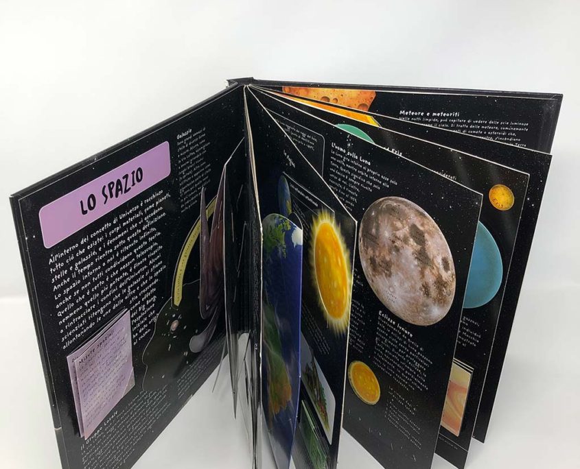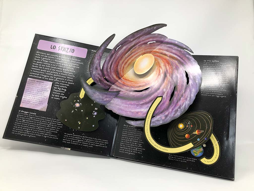 Uno tra i libri più belli ed amati sul Sistema Solare e sullo spazio è questo meraviglioso pop-up book tridimensionale con tantissimi inserti interattivi. Si chiama Occhio allo spazio, edito dalla ABraCadabra. Se volete acquistarlo, lo trovate qui.